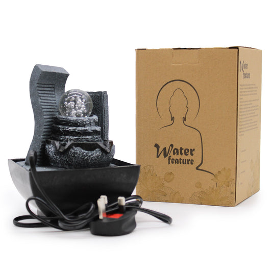 Tabletop Water Feature - 35cm - Silver Buddha Cascade & Crystal Ball